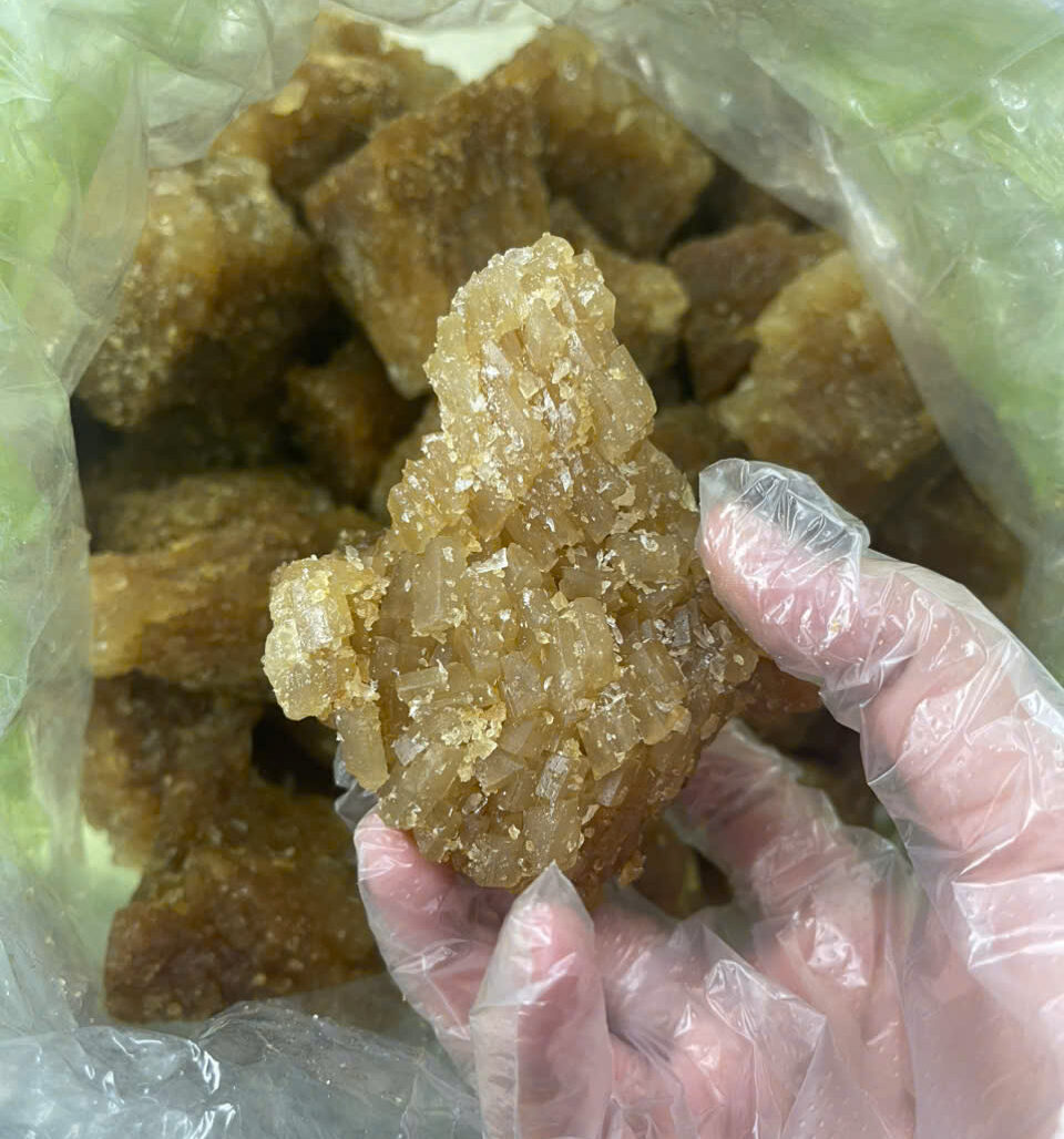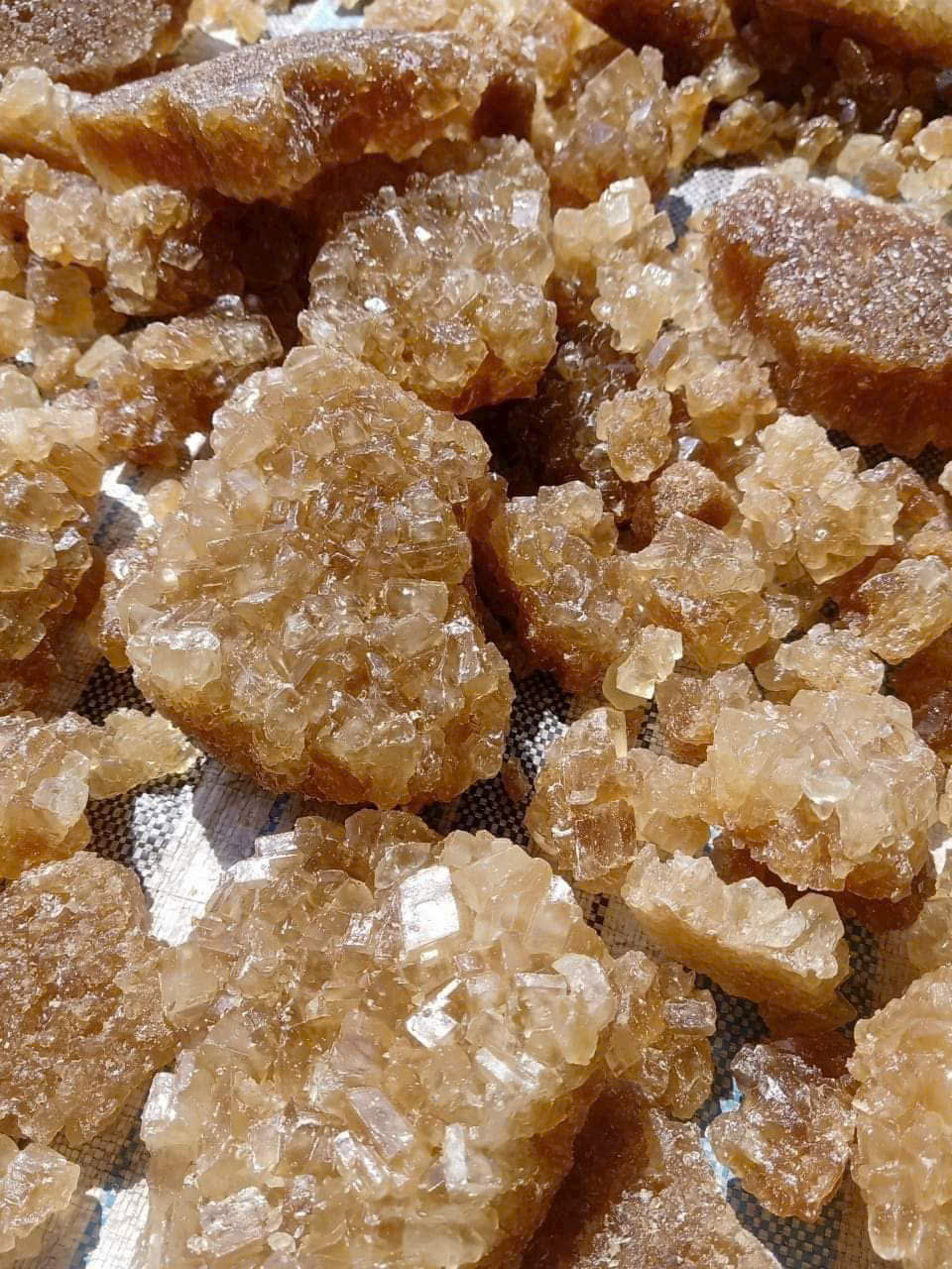 Đường phèn đặc biệt, kết tinh hoàn toàn tự nhiên từ mật mía trong thùng, hơn 12 tháng mới được 1 mẻ.